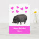 Niedliches Foto eines vietnamesischen Pot Bellied Pig umgeben von hübschen rosa Liebe Herzen, um Ihrem Liebsten einen guten Geburtstag zu wünschen. Personalisieren Sie diese Karte einfach, indem Sie den Vorlagentext vorne und innen bearbeiten.