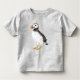 Eine gemalte Abbildung eines Puffins. Dieser niedliche Vogel wird im Stil einer Kinderbuch-Abbildung gezeichnet. Sie hat Stiche und Fäden auf ihren Federn. Ein Design für alle, die Puffins Lieben.