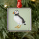 Eine gemalte Abbildung eines Puffins. Dieser niedliche Vogel wird im Stil einer Kinderbuch-Abbildung gezeichnet. Sie hat Stiche und Fäden auf ihren Federn. Ein Design für alle, die Puffins Lieben.