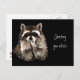 Niedlicher Raccoon, der Küsse bläst und einen Kiss Postkarte