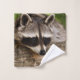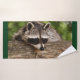 Handtuchhandtuch mit Foto eines niedlichen und neugierigen Waschbads, der auf einem Holzlog sein Gesicht ruht. Schön.