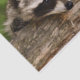 Gewebepapier mit einem Foto eines niedlichen und neugierigen Waschbads, das auf einem Holzlog sein Gesicht ruht. Schön.