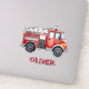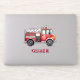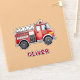 Dieser personalisierte Aufkleber verfügt über einen niedlichen whimsical Aquarell Feuerwehrwagen.