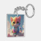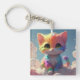 Niedlicher Regenbogen Kätzchen auf einer Wolke Schlüsselanhänger