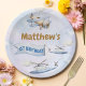 Niedliche Retro Blue Airplane 1. Geburtstagspapier Teller
