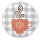 Ein niedlicher Retro-Tee oder eine Kaffeetasse, die auf einem karierten Büffel mit weißem und grauem Hintergrund dampfen. Dies wäre perfekt für eine Zuhause im Landstil.