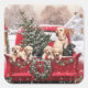 Niedlicher Retro Red LKW mit Welpen Hunde Quadratischer Aufkleber