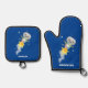 Niedlicher Roboter, der im Weltraum Cartoon fliegt Ofenhandschuh & Topflappen-Set