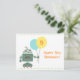 Schick dem Geburtstagsjungen mit dieser niedlichen Grußpostkarte, die einen Cartoon eines fröhlichen grünen Roboters auf Rädern hat, deine Geburtstagswünsche. Der Roboter hält an blauen und gelben Ballons fest. Punktmuster für Randdekorationen. Farbenfrohe und bezaubernde Gestaltung für Kinder, die Science Fiction oder Roboter Spielzeug Liebe!
