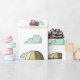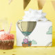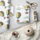 Schönes Papier mit einem Muster eines kleinen rosa Bären in einem Heißluftballon, der wegfliegt. Ideal für Geburtstage, Babydusche und Abschiedsgeschenke. Illustriert und entworfen von Patricia Alvarez.