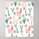 Niedlicher rosa Lama und grüner Kakteen Poster