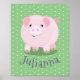Es macht Spaß! Dieses bezaubernde Töpferschwein wird einem Kinderzimmer ein wenig Freude verleihen. Gezeichnet im niedlichen Cartoon-Stil auf einem hellgrünen Polka Punkt Hintergrund.