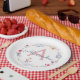Niedlicher rosa Schwan und sonnenblumiger Kranz mi Pappteller