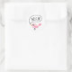 Niedliche, runde Aufkleber mit einem kleinen rosa Cartoon-Vogel mit einer Sprechblase und dem Wort "Hallo". Schönes Design. Macht niedliche Umschlag Aufkleber oder kann als dekorative Aufkleber oder für Scrapbooking verwendet werden.