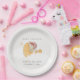 Niedlicher, rosafarbener Bär über Mond Girl Babydu Pappteller