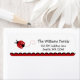 Eine niedliche rote Marienkäferillustration auf einem weißen Adressen-Etikett. Wählen Sie den besonders anfertigen Knopf vor, um die Schriftartart, -farbe und -größe zu ändern.