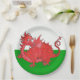 Eine Papierplatte, mit einem niedlichen roten Drachen auf einem grünen und weißen Hintergrund, ähnlich der nationalen Flagge Walisers; von einer handgemalten wunderlichen Illustration durch Judy Adamson. Dieser Entwurf kann justiert werden, um jeden möglichen Pappteller zu passen.