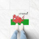 Eine Spaß Tür-Matte, damit Sie, mit einem niedlichen roten Drachen auf einem grünen und weißen Hintergrund besonders anfertigen, der der nationalen Flagge Walisers ähnlich ist; von einer handgemalten wunderlichen Illustration durch Judy Adamson. Sie können besonders anfertigten den Text, ändern den Schriftart und auch die Größe neu bestimmen und bewegen das Drachemotiv, wenn Sie wünschen.