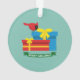 Niedlicher, roter Kardinal eröffnet ein blaues Ges Ornament