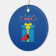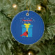 Niedlicher roter Kardinal mit blauem Geschenk Keramik Ornament