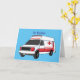 Dieser glückliche rote Krankenwagen ist auf dem Weg zu helfen! Gezeichnet in lustigen Cartoon Stil.