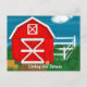 Helle und farbenfrohe Zeichnungen eines Roten Stalls mit individualisierbarer Living the Dream Typografie. Im Hintergrund Grüße an Ihre Freunde und Familie, die Sie nicht sehr oft mit einer humorvollen Bilanz Ihres Lebens sehen, den Traumplan und den Grund, warum Sie nicht so viel gesellig.. Original zeichn und Design von Suki's, alle Rechte vorbehalten.