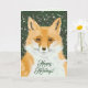 Digitales und originelles zeichn oder Gemälde eines niedlichen kleinen roten Fuchs, Set auf einem Hintergrund von Schneeflocken, die in den braunen und grünen Wald fallen. Dieses Design hat einen festen Hintergrund, aber Sie können die Größe und Position des Bildes ändern und den Text ändern. Auf der Innenseite dieser Karte ist ein kleines, transparentes Bild des kleinen Fuchs. Sie können dieses Bild ändern oder entfernen und den Hintergrund ändern. Gute Ferien!