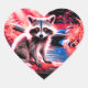 Niedlicher Rotlichtwald - Tierraccoon durch Stream Herz-Aufkleber