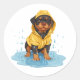 Niedlicher Rottweiler-Hund mit Regenmantel Runder Aufkleber