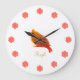 Niedlicher roter Königsvogel und Blume auf weißem Hintergrund Wanduhr. Eine ideale Zuhause-Wanduhr oder ein Geschenk für alle!