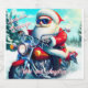 Ein Fahrradfahrer Santa freut sich, auf seinem Fahrrad im Winter zu fahren.