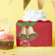 Moderne, elegante und niedliche Weihnachtsverpackung, mit dem Bild eines Einhorns, der den Schlitten des Weihnachtsmanns (voller Geschenke) zieht, dem Text "Frohe Weihnachten & Glück 20XX" in stilvoller Schrift / Kalligrafie-Handschrift und einem personalisierten Namen. Mit Sprinklen von weißen und silbernen Schneeflocken, und ein Paar Weihnachtsglocken mit einem Hauch von Heiligen, auf einem Weihnachtsrot Hintergrund. Stellen Sie sicher, dass Sie den Namen und das Jahr personalisieren.