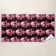 Niedliches Schädelhandtuch mit einem Cartoon-Bild eines lustigen rosa Schädels mit rosigen Wangenknochen und zwei niedlichen Geistern in den Augenhöfen, die sich gegenseitig beobachten und eine lächelnde, kleine bezaubernde Spinne stehend auf einem dieser spukhaften Freunde. Dieses spaßige Macabre Design hat helle psychedelische, trippige rosa und gelbe Farben.