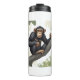 Niedlicher Schimpanse auf den Filialgrüßen Thermosbecher