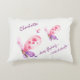 Ein Niedliches Schmetterlingskissen in Rosa und Lila, mit dem Namen Ihres Kindes. Konzipiert mit rosa und lila Schmetterlingen auf weißem Hintergrund. Der Text lautet: behalt einen fliegenden kleinen Schmetterling und den Namen deines Kindes. Um den Namen zu personalisieren, fügen Sie ihn einfach in unsere einfache Vorlage ein. Das Gegenteil ist ein passender lila Schatten.