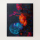 Niedlicher Schmetterling über Psychedelic Poppy im Mondlicht - Puzzle aus Puzzle