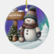 Niedlicher Schneemann am Nordpol mit Nordlichter Keramik Ornament