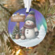 Niedlicher Schneemann am Nordpol mit Nordlichter Ornament