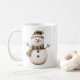 Dieser niedliche Schneemann mit einem braunen karierten Schal macht diese Tasse zum perfekten Accessoire für Ihre Feier oder Ihr Familienfrühstück. Frohe Weihnachtsstimmung kann sich ändern. AI unterstützte Grafik, die mit kommerziellem Einsatz erworben wurde.
