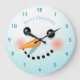 Niedlicher Schneemann-Kopf mit rosigen Wangen Runde Wanduhr