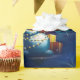 Lassen Sie sich von diesem Weihnachtsgeschenk verzaubern, das einen niedlichen Schneemann mit Geschenken und Feuerwerk auf blauem Hintergrund zeigt. Deine Geschenke werden unter dem Baum noch mehr glühend aussehen.