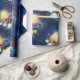 Niedlicher Schneemann mit Geschenken und Feuerwerk Geschenkpapier