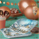 Niedlicher Schneemann mit Weihnachten-Hütte Pappteller