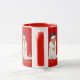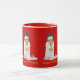 Der Schneemann auf dieser originalen Tasse trägt seinen besten schwarzen Hut und hat seinen rot-grünen gestreiften Weihnachtsweihnachtsweih an einen Zweig im Schnee gebunden. Sie können diese lustige Weihnachten-Tasse mit Ihrem eigenen Text anpassen. Die originale niedliche Weihnachtsillustrierung ist in Aquarellfarbe gestrichen und trägt den Titel "Der Weihnachtsmann kommt."
