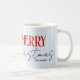 Niedlicher Schneemann und Schnee Weihnachten Weihnachtsfeiertag Kaffee Tasse. Dieses reizvolle Urlaubsdesign besticht durch einen liebenswerten Schneemann, der in einem hellen roten Schal und Hut gekleidet ist und perfekt auf einem sanften blauen Hintergrund positioniert ist. Personalisieren Sie es mit Ihrem eigenen Namen.