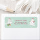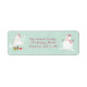 Lächelnder Schneemann, geschmückter Weihnachtsbaum und präsentiert sich auf einem aquamarinen, schneebedeckten Hintergrund mit individualisierbarem Text.