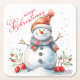 Niedlicher Schneemann Winter Wasserfarbe Frohe Wei Rechteckiger Pappuntersetzer