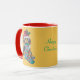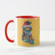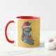 Der niedliche Welpe auf dieser individualisierbaren Weihnachtsfeier sieht mit seiner roten Weihnachtsmannmütze mit einem Hauch von Heiliger darin sehr festlich aus. Der kleine braune und schwarze Welpenhund hält seinen rot-grün gestreiften Weihnachtsbaum in seinem Mund, während er eifrig auf einen Besuch vom Weihnachtsmann wartet, um seinen Strumpf mit vielen Geschenken und anderen Hündchen Leckereien zu füllen. Auf dieser originalen Weihnachtsferien-Tasse sieht er ganz besonders aus. Sie können diese einzigartige Tasse personalisieren, indem Sie Ihren eigenen Text hinzufügen, wenn Sie dies wünschen.