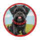Niedlicher schwarzer Hund mit rotem Kollar im Cart Schneidebrett