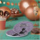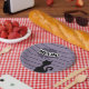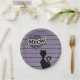 Niedlicher Schwarzkatze-Cartoon sagt Methan Pappteller